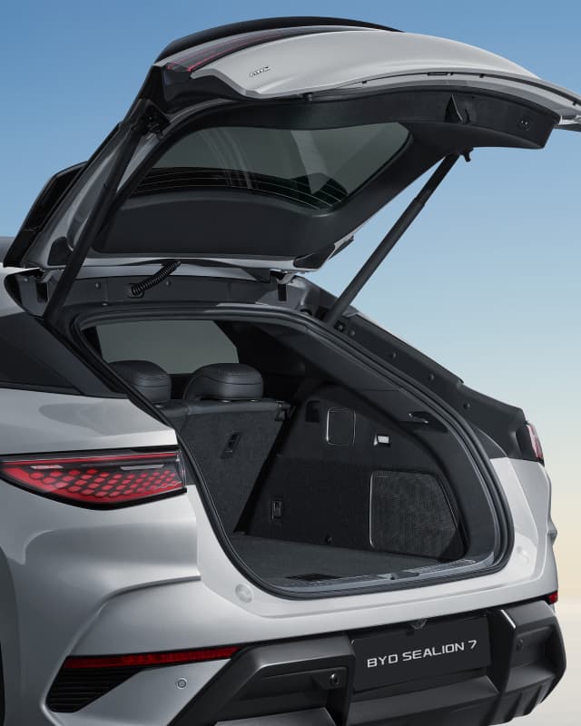 Grâce à son hayon électrique activable d’un simple geste du pied, BYD SEALION 7 facilite grandement le chargement et le déchargement du véhicule. Que ce soit pour des sacs de courses, du matériel de sport ou des bagages pour un week-end, cette fonctionnalité vous permet de rester concentré sur l'essentiel. Le système anti-pincement intelligent et les positions d'arrêt ajustables renforcent à la fois la sécurité et le confort, simplifiant ainsi votre quotidien avec ce SUV familial.